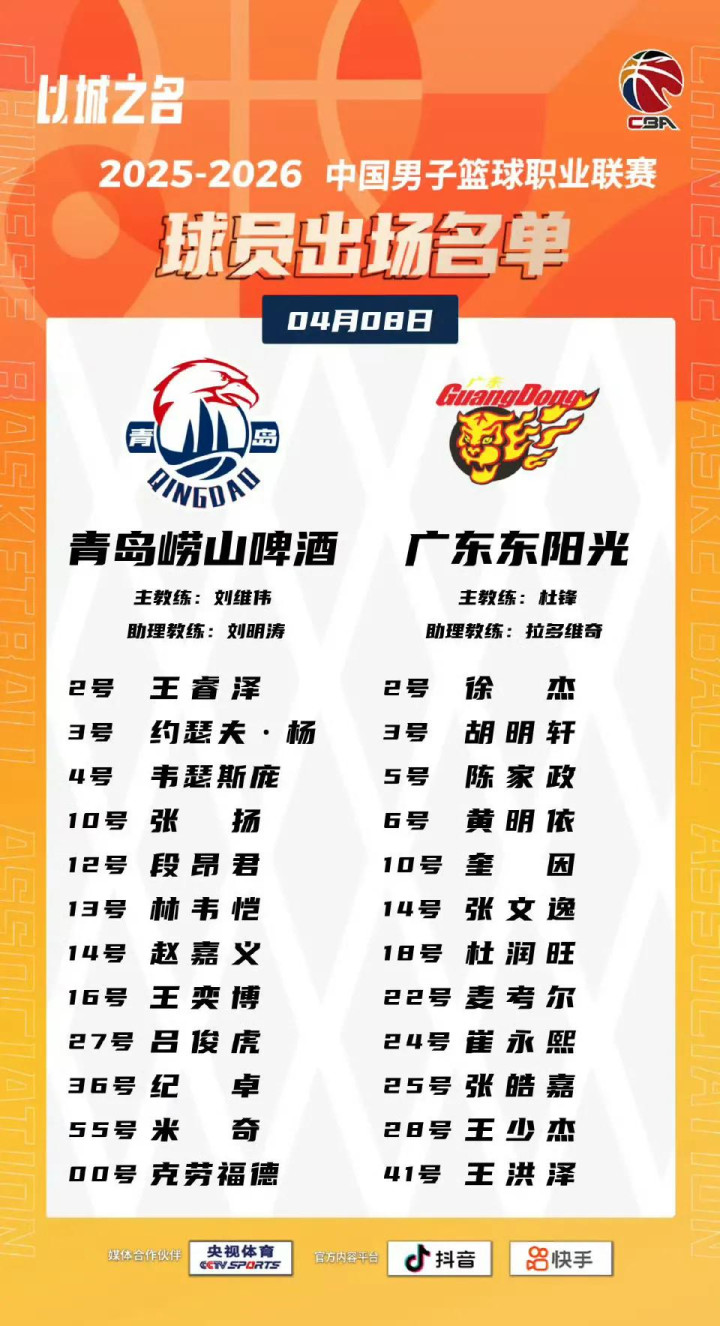 上一场客场广东不敌山东后,积分排名23胜12负直接落至第六位。本场对阵青岛对于欲稳固排名的广东来说不容有失。但是广东目前状况非常不理想,球队又遭遇了伤病潮,阵中两名主力外援萨林杰和萨姆纳双双受伤需要休战两周左右,常规赛还剩七轮,正是争取有力排位的关键时刻,主力阵容出现不整,广东无疑压力陡增。