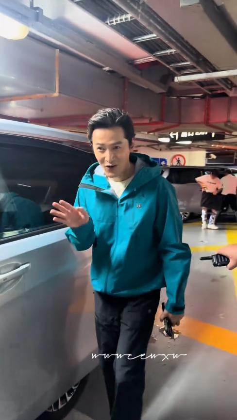 当天,胡歌身穿一件蓝色冲锋衣、黑色长裤,梳着大背头。