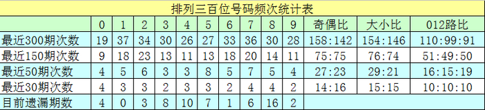 百位号码:前50期走势活跃的号码为:5开出8个,7开出7个,2开出6个;走势最冷的号码为:3、4开出3个,0、9开出4个。奖号012路比开出16:15:19,奇偶比开出27:23。本期百位杀排除:0、9,注意号码5、6、8,胆码参考5。