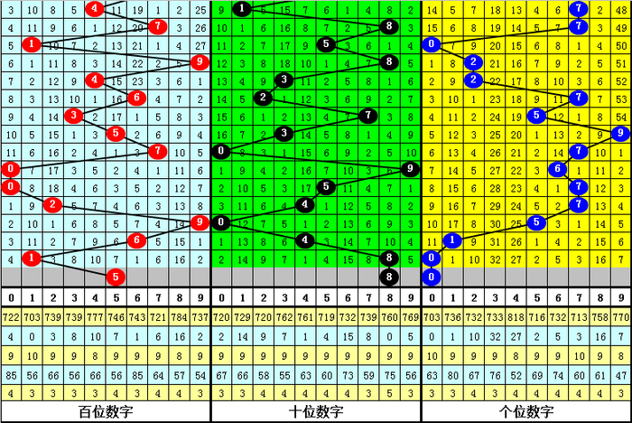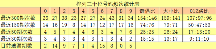 十位号码:前50期走势最活跃的号码为:2、8开出7个,5、9开出6个;走势最冷的号码为:6开出3个,0、3、4、7开出4个。十位号码012路比开出17:13:20,大小比开出26:24。本期十位排除两码:0、7,参考号码2、5、8,胆码关注8。