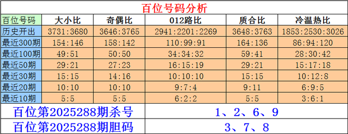 近期百位大号表现较冷,目前轮空1期,本期防大号回补;该位偶号近期走冷,上期轮空之后,本期注意偶号回补。百位本期杀号:1269,胆码关注:378。