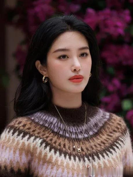 > 杨采钰的衣品是数一数二的! 穿提花毛衣+焦糖棕半裙, 时髦减龄