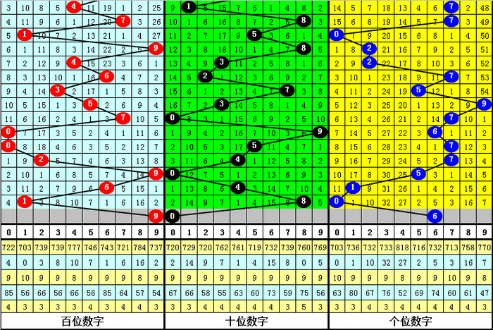 个位:1、2路号较热,本期防0路号反弹,关注6。