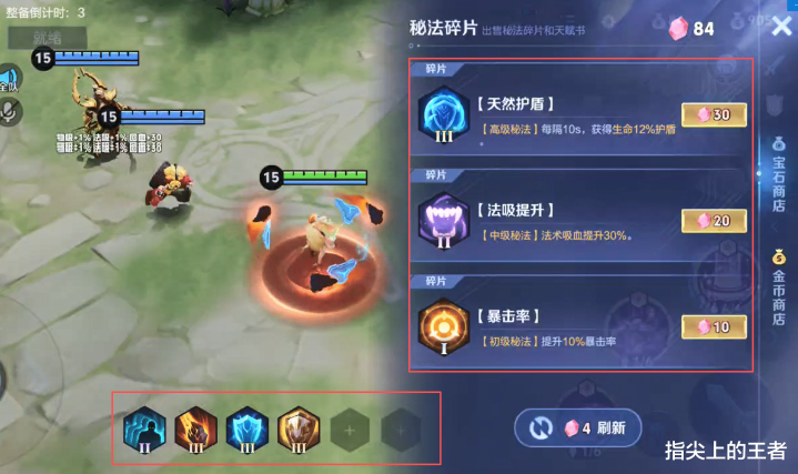 使用四颗宝石(固定)可以刷新雕纹,前期买了低等级的雕纹,也可以后期卖掉换成满级的,从而提升自身的强度。