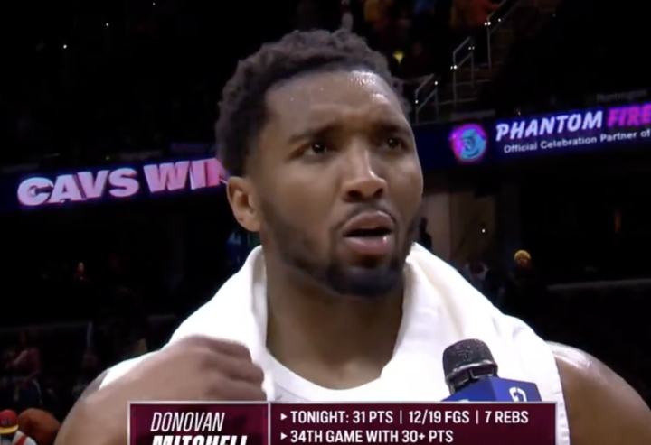 本场比赛,骑士球员多诺万-米切尔出战34分钟,19投12中,其中三分球4投1中,罚球6投6中,得到31分7篮板4助攻1封盖。