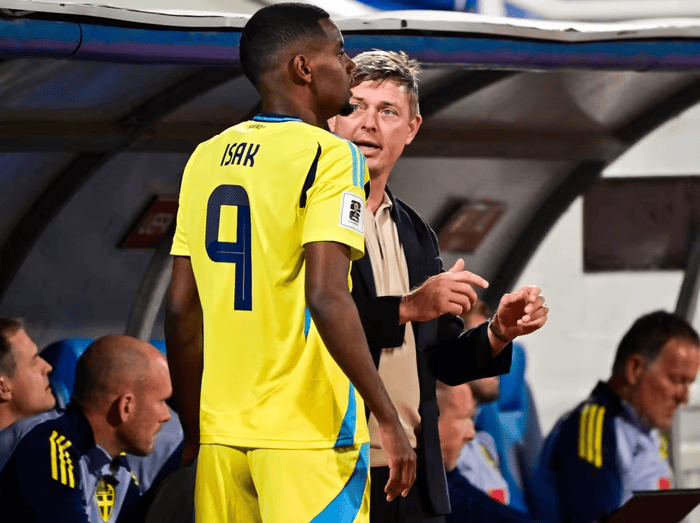 如果亚历山大-伊萨克现在不上场,那什么时候才能上场?他只剩下十分钟的比赛时间了……我们需要他。我们需要尽快找到一切可能的球员——伊萨克是世界上最好的球员之一。ErikNiva在转播中说道。)